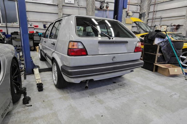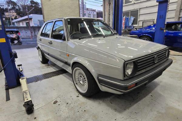 カレント自動車株式会社 カレントテックセンタです。本日はフォルクスワーゲンのゴルフII(1990年式)がご入庫されました。